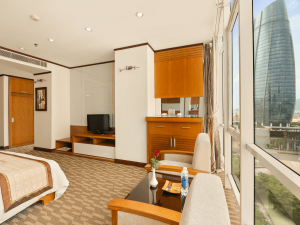 - Phòng Deluxe đơn có một giường lớn. Phòng tắm có áo choàng tắm sang trọng, dép, máy sấy tóc và đồ vệ sinh cá nhân sang trọng.